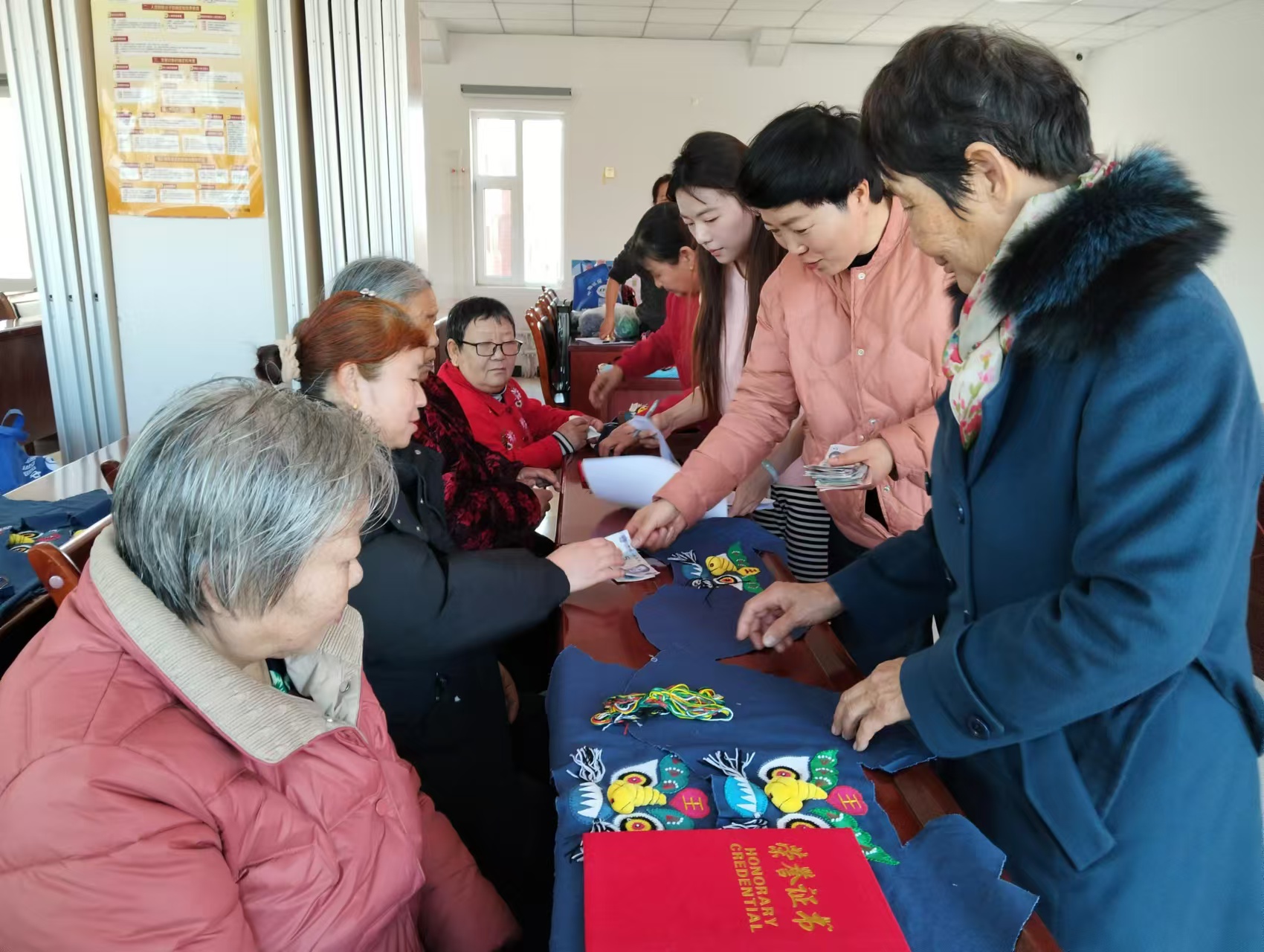 非遺傳承之路并非一帆風(fēng)順。原隆村的婦女受教育程度不高,剛開始教學(xué)交流都困難,為了提高婦女的識字率,每次發(fā)工資前,劉亞明要她們簽名,才能領(lǐng)取工資?!安粫懽约好志皖I(lǐng)不了工資,我就是通過這樣的方式,一步一步提高她們文化水平,現(xiàn)在有些婦女已經(jīng)可以熟練地操作電腦了?!薄喢髡f。